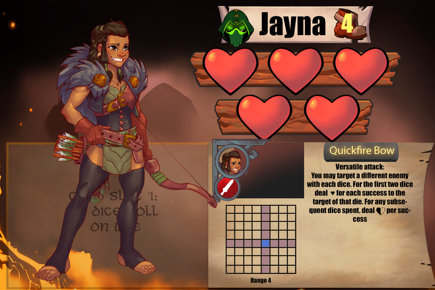 In the Arena, Jayna is a quick-firing archer, with a Versatile ability that allows her to spread damage among multiple targets from range - as long as she can line up her targets! Her first two targets take more damage, while successive shots become more difficult to land.